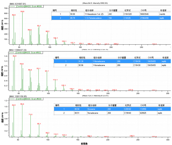 圖2.3 三重峰的質(zhì)譜圖(圖2.2中8.6~8.9 min)經(jīng)NIST2014庫確認