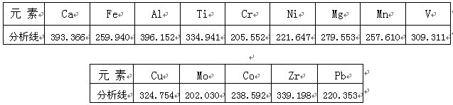 根據(jù)ICP軟件譜線庫提供所有元素不同譜線,首先選擇被測元素靈敏度高的譜線,其次考慮不受樣品基體及被測元素相互之間干擾小的譜線的原則,選擇分析線如下。