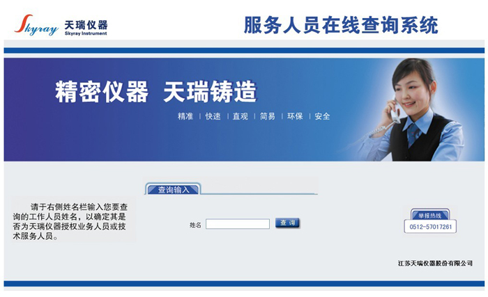 經(jīng)過2個(gè)月的準(zhǔn)備工作,天瑞儀器“服務(wù)人員在線查詢”系統(tǒng)今日投入試運(yùn)行,該系統(tǒng)涵蓋了天瑞儀器在職的銷售和技術(shù)服務(wù)人員的基本信息,通過該查詢系統(tǒng),客戶可以隨時(shí)查詢上門服務(wù)的銷售或者技術(shù)服務(wù)人員相關(guān)信息。