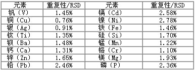 儀器自動點火后按照儀器工作條件設(shè)置好參數(shù)后,稀釋劑直接通過霧化器吸入霧室,進入等離子體,待儀器穩(wěn)定后依次測量空白溶液、標(biāo)準(zhǔn)溶液及已稀釋處理的樣品溶液,儀器根據(jù)工作曲線可直接得出最終樣品中各元素的含量。