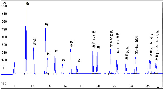 圖1.16種多環(huán)芳烴標(biāo)準(zhǔn)溶液色譜圖