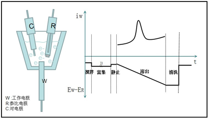 在一定的電位下,使待測金屬離子部分地還原成金屬并溶入微電極或析出于電極的表面,然后向電極施加反向電壓,使微電極上的金屬氧化而產(chǎn)生氧化電流,根據(jù)氧化過程的電流一電壓曲線進(jìn)行分析的伏安法。 陽極溶出伏安法以其極低的成本與高靈敏度的特點、目前在歐美正取代傳統(tǒng)的原子吸收方法大量應(yīng)用于環(huán)境應(yīng)急監(jiān)測、自來水檢測、電鍍和表面處理行業(yè)廢水檢測、食品、制藥、醫(yī)院廢水監(jiān)測等方面。