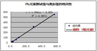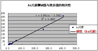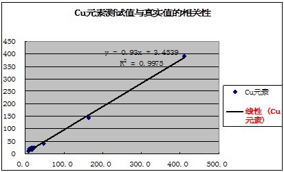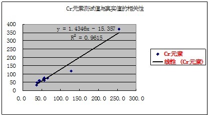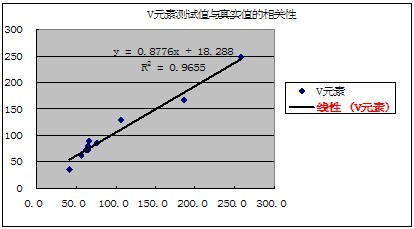 有關(guān)元素的測試值與真實值的相關(guān)性如下表示: